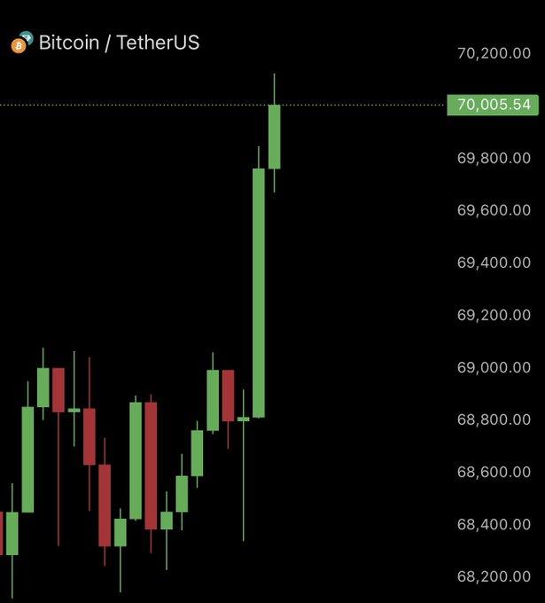 Bitcoin has risen above $70,000 yet again.In the past 60 minutes, shorts worth 24,000,000 have been liquidated.